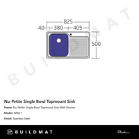 Oliveri Nu-Petite Single Bowl Topmount Sink With Right Drainboard Stainless Steel