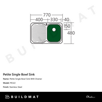 Oliveri Petite Single Bowl Sink With Left Drainboard Stainless Steel