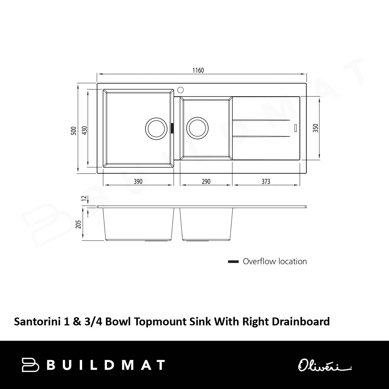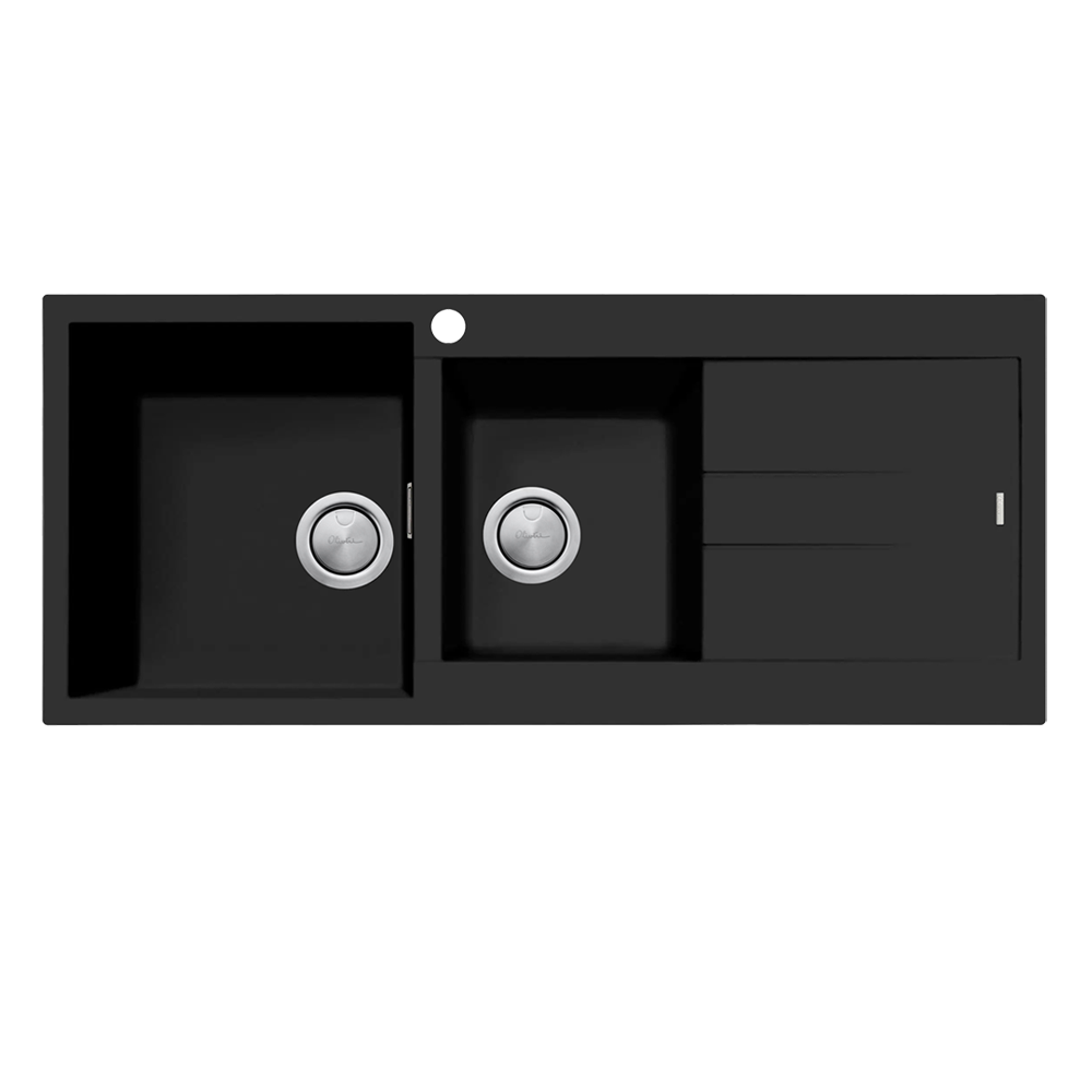 Oliveri Santorini 1 & 3/4 Bowl Topmount Sink with Right Drainboard Matte Black