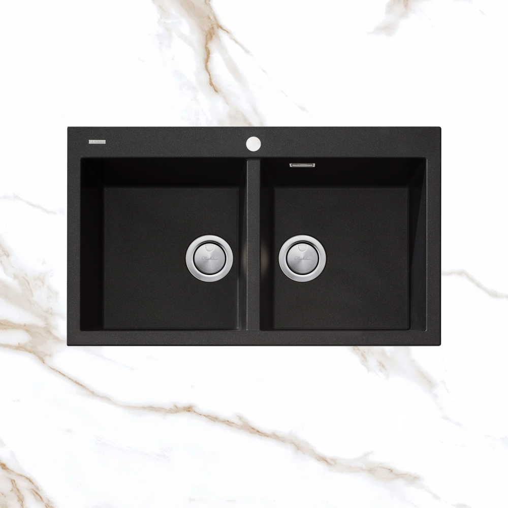 Oliveri Santorini Double Bowl Topmount Sink 1TH with Overflow Black