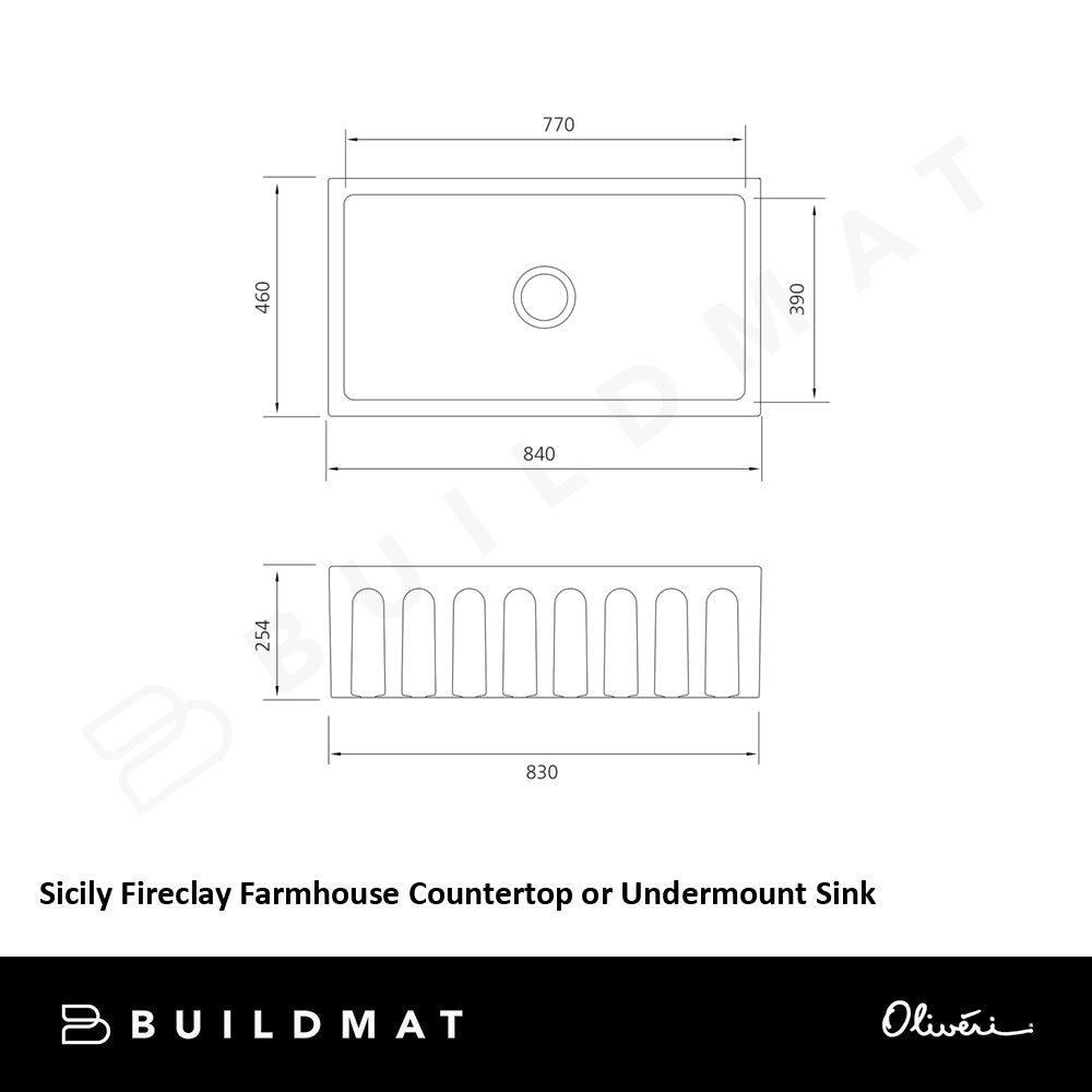 Oliveri Sicily Fireclay Farmhouse Countertop or Undermount Sink Matte Black