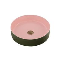 Oliveri Terzofoco Short Circular Counter Top Basin Olive and Salmon