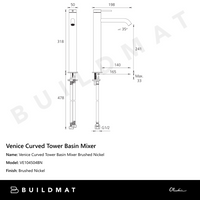 Oliveri Venice Curved Tower Basin Mixer Brushed Nickel