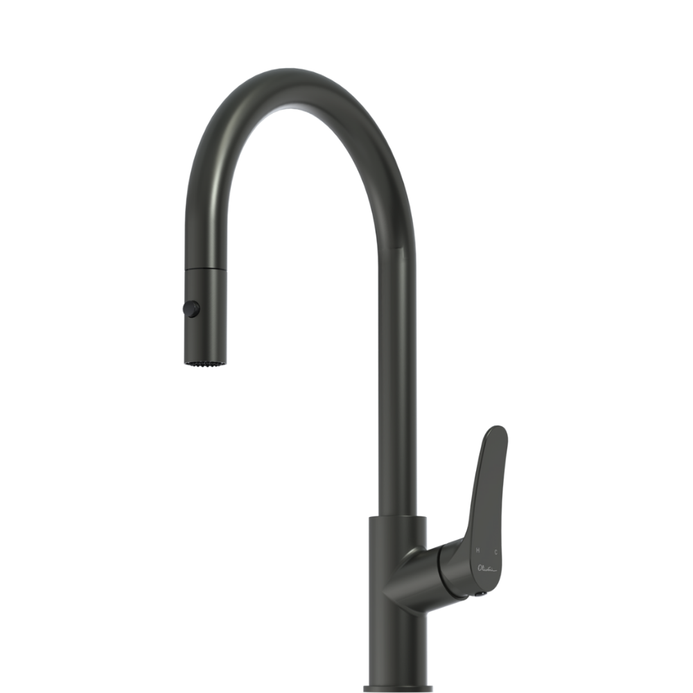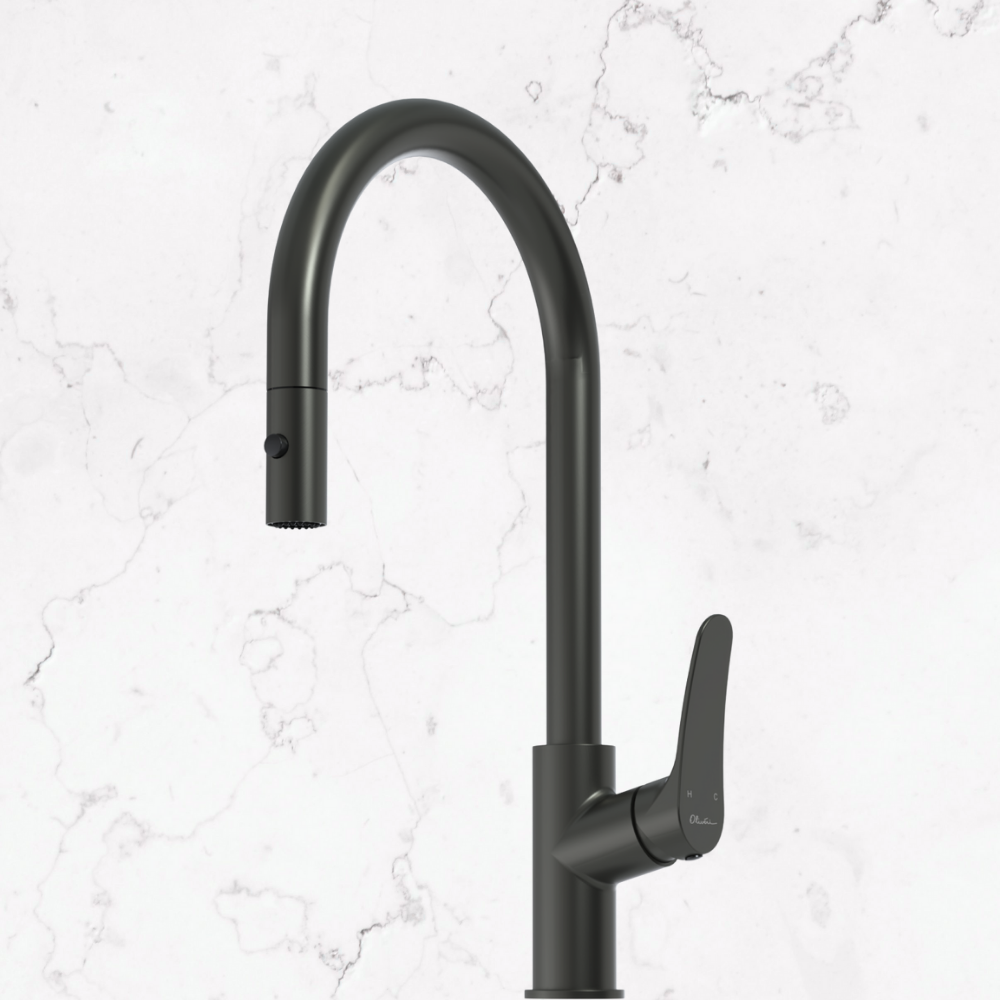Oliveri Verona Pull Out Goose Neck Spray Mixer Gunmetal Lead Free