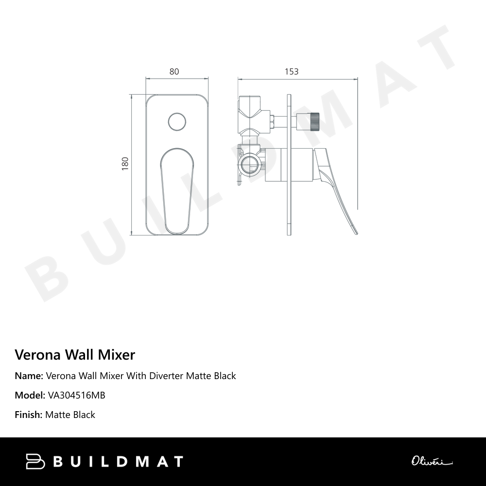 Oliveri Verona Wall Mixer With Diverter (Trim Kit Only) Matte Black