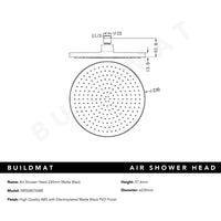 Product Type: Shower HeadProduct SKU: NR508076MBColour: Matte BlackMaterial: High Quality ABSWELS Rating: 9L/Min, 3StarWELS Registration No: S17296 Features Single function overhead shower head 230mm overhead spray Rub clean nozzles Operating... Read more