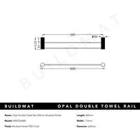 Nero Opal Double Towel Rail 600mm Brushed Nickel