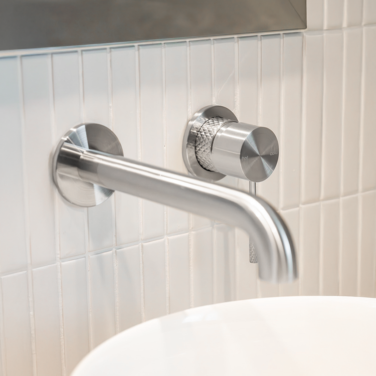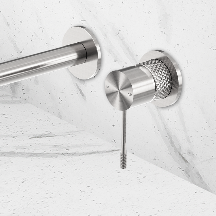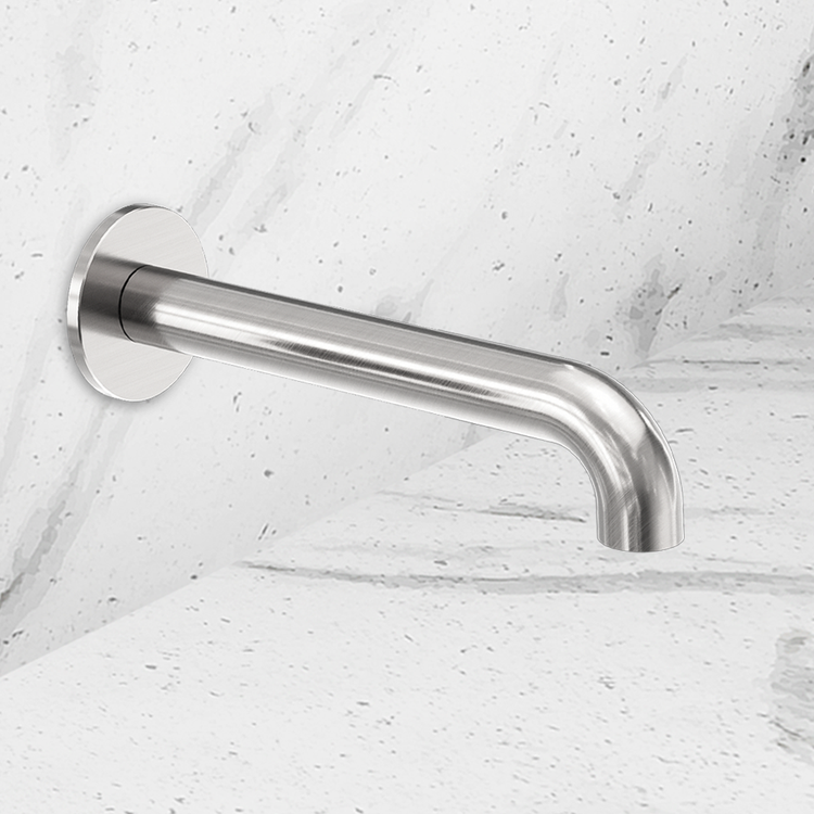 Opal Wall Basin/Bath Mixer Separate Black Plate 260mm Spout Brushed Nickel