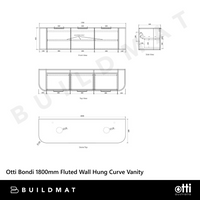Bondi 1800mm Satin White Fluted Wall Hung Curve Vanity