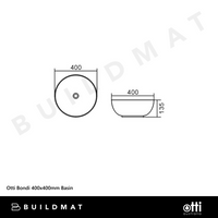 Size: 400x 400x135 mmMounting: Above Counter Features: Ultra Slim Fine Ceramic Pop up Waste Sold Separately Requires 32mm Waste, No Overflow Optional Color: Matt Grey (IS4030MG) Matt White (IS4030MW) Read more