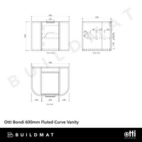 Bondi 600mm Woodland Oak Fluted Curve Vanity