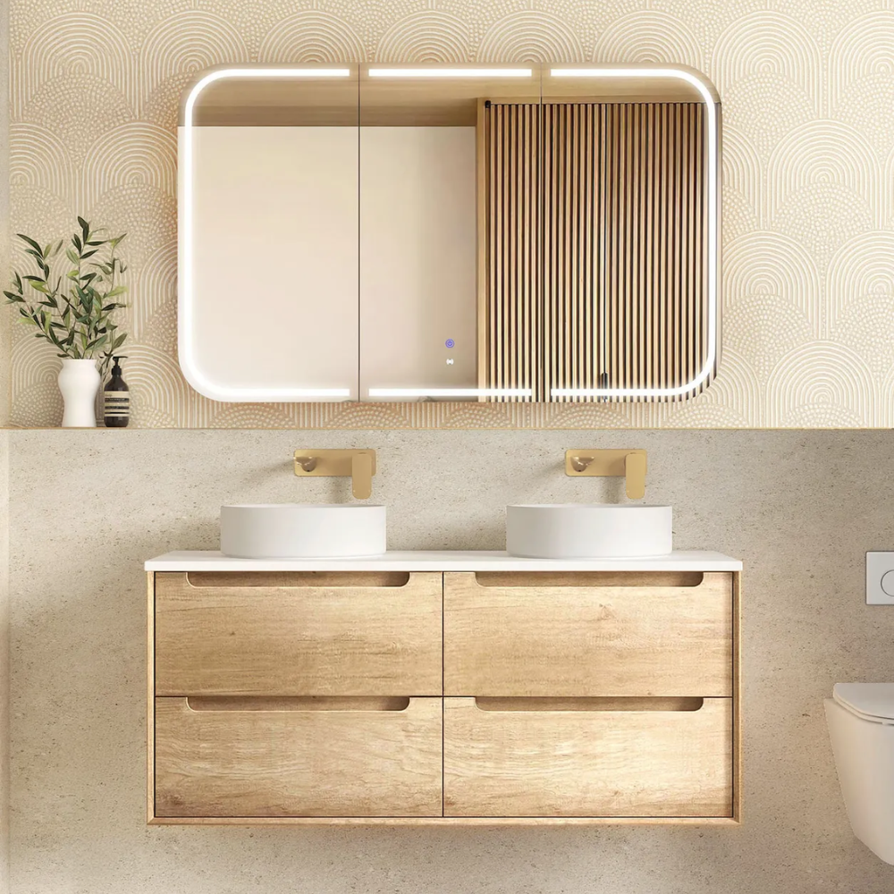 Byron 1200mm Natural Oak Wall Hung Vanity Double Bowl