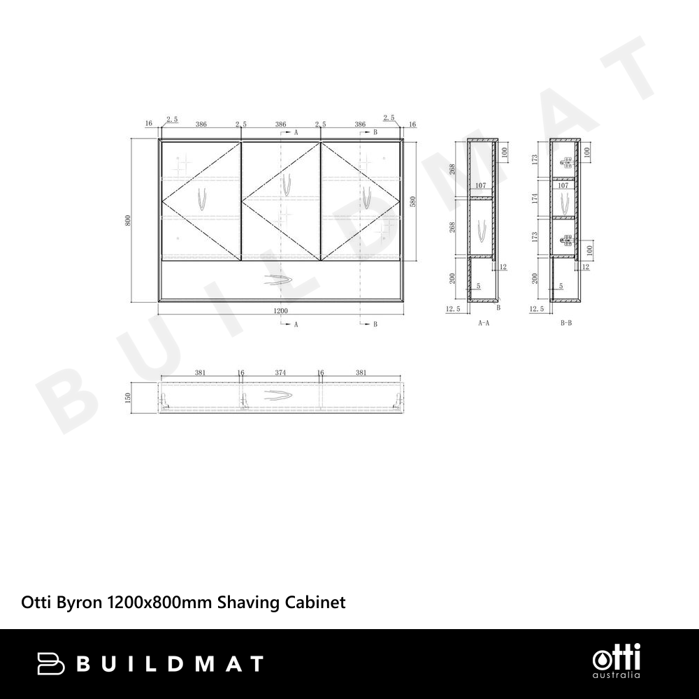 Dimension: 1200(W) x 800(H) x 150(D)mm Features Configuration: Wall Mounted Doors: 3 Doors Soft Closing Handle: Finger Pull Finish: Moisture Resistant Plywood Exterior Mirror – 4mm Copper‑free mirror Read more