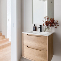 Features Dimensions: 590x460x550mm Overall Height: 550 Overall Depth: 460 Mounting: Wall Hung Color: Natural Oak Construction: 2 Drawer, High moisture resistant plywood Interior Finish: Natural Oak Handles: Soft Edge Finger... Read more