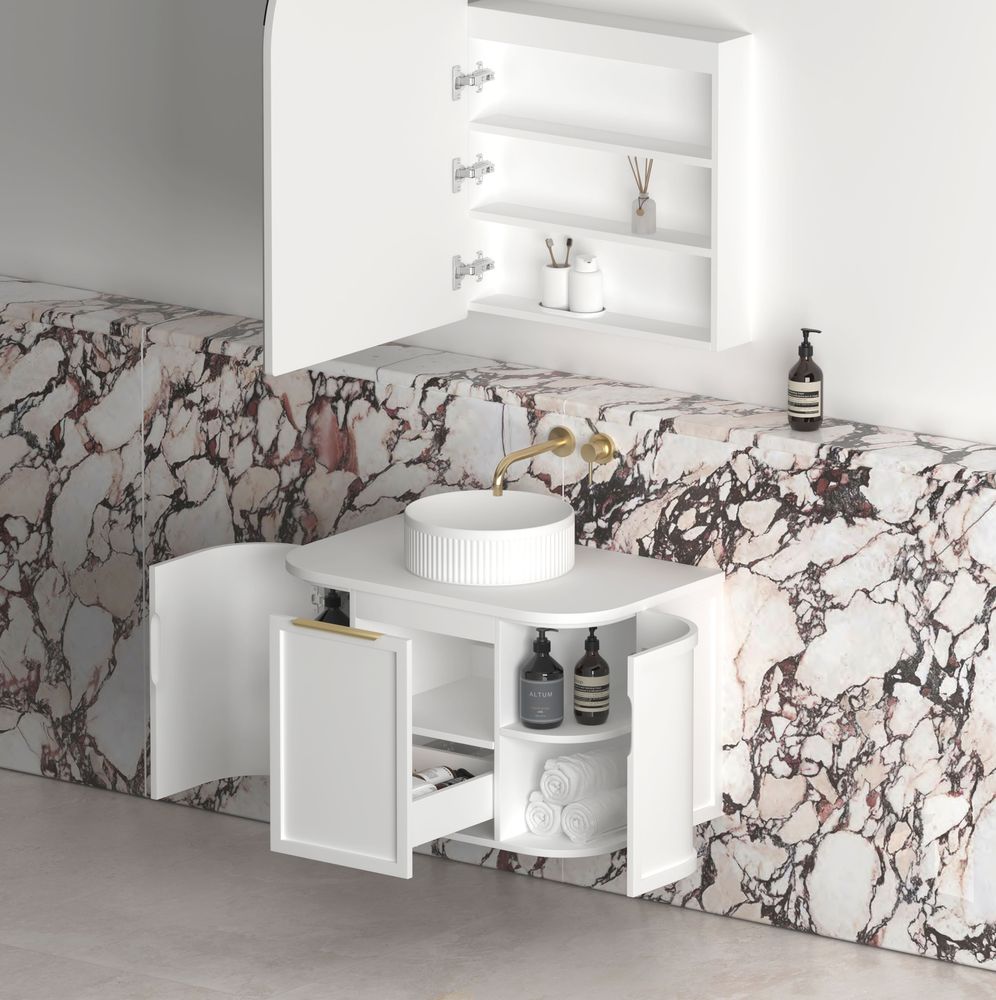 Otti Hampshire 750mm Satin White Wall Hung Curve Vanity