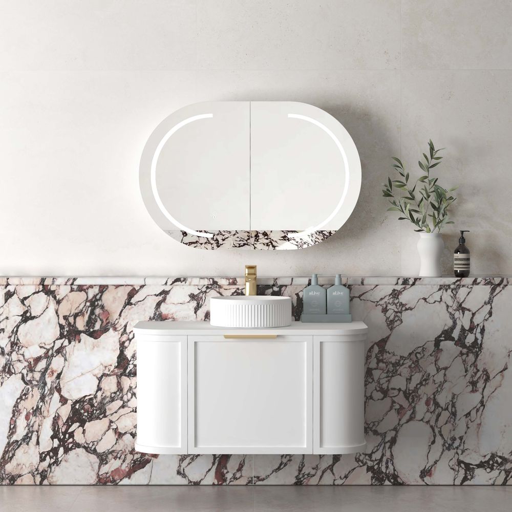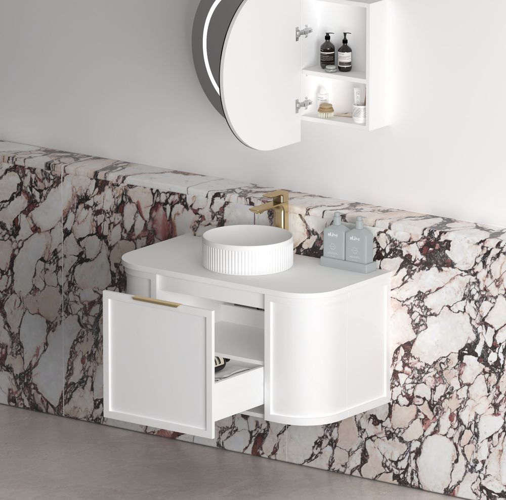 Otti Hampshire 900mm Satin White Wall Hung Curve Vanity