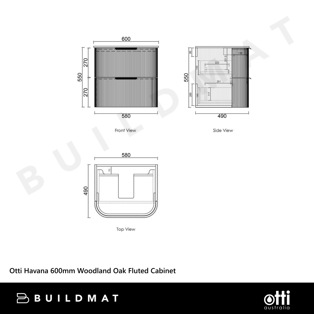 Otti Havana 600mm Woodland Oak Fluted Wall Hung Vanity