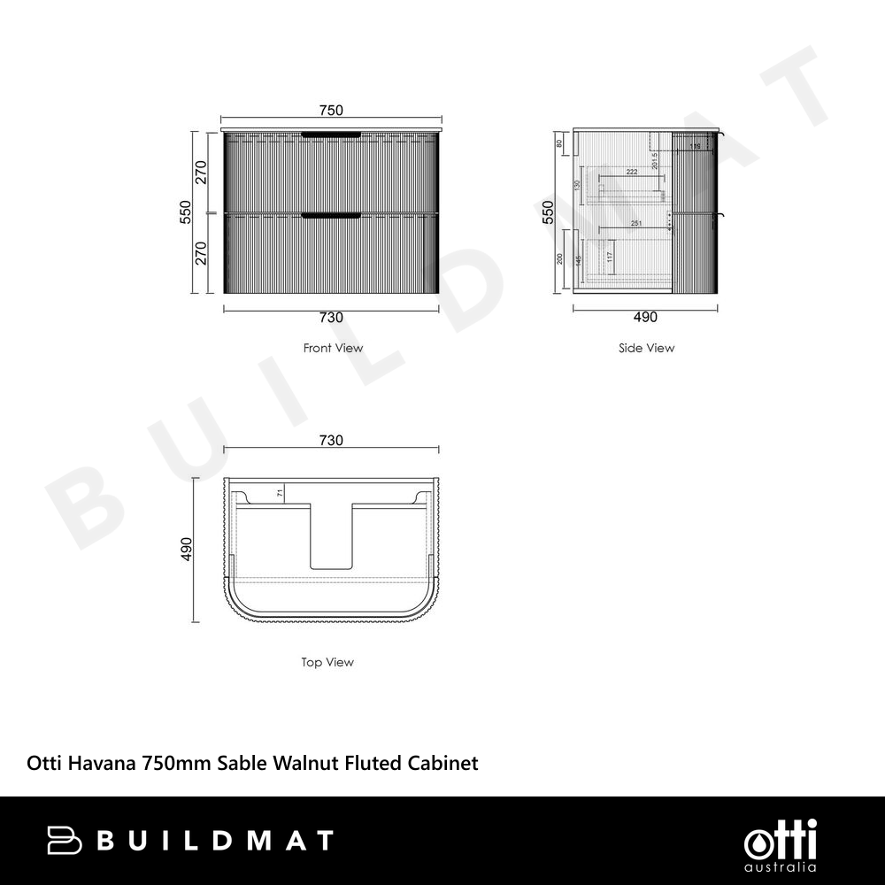 Otti Havana 750mm Sable Walnut Fluted Wall Hung Vanity