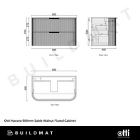 Otti Havana 900mm Sable Walnut Fluted Wall Hung Vanity