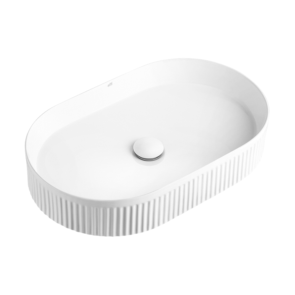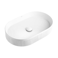 Size: 560x350x120mmMounting: Above Counter Features: French Fluted Detail Design Gloss White Finish Oval Shape Taphole Recommendation: Suitable with 12 Oclock Taphole or None for Wall Tapware (Not Recommended with 10... Read more