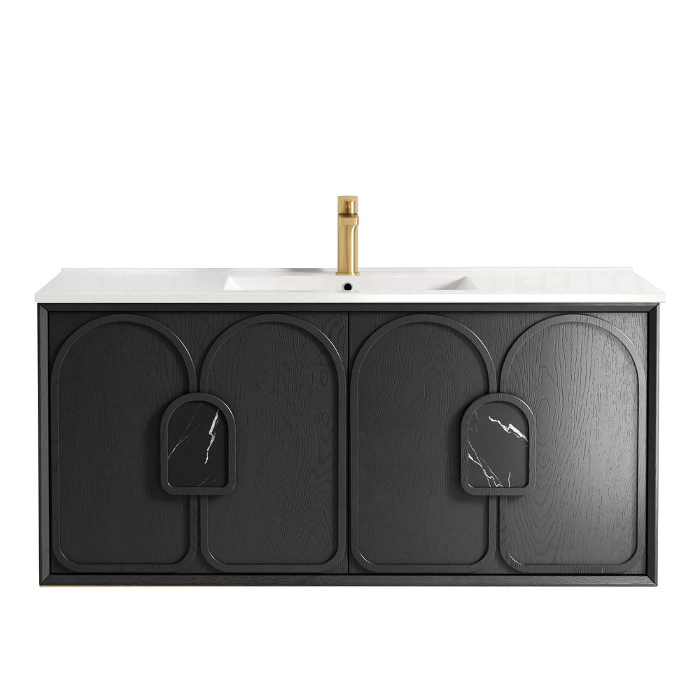 Otti Laguna 1200mm Black American Oak Wall Hung Vanity with Natural Carrara Marble Top and Undermount Basin