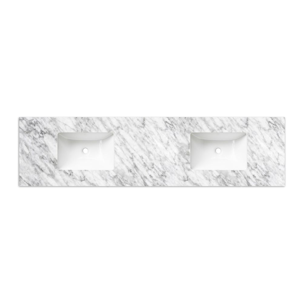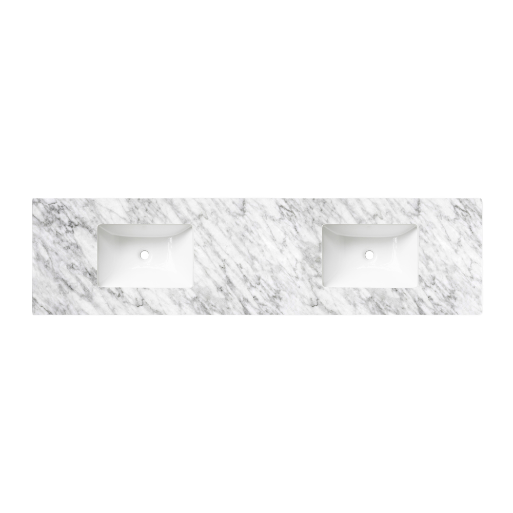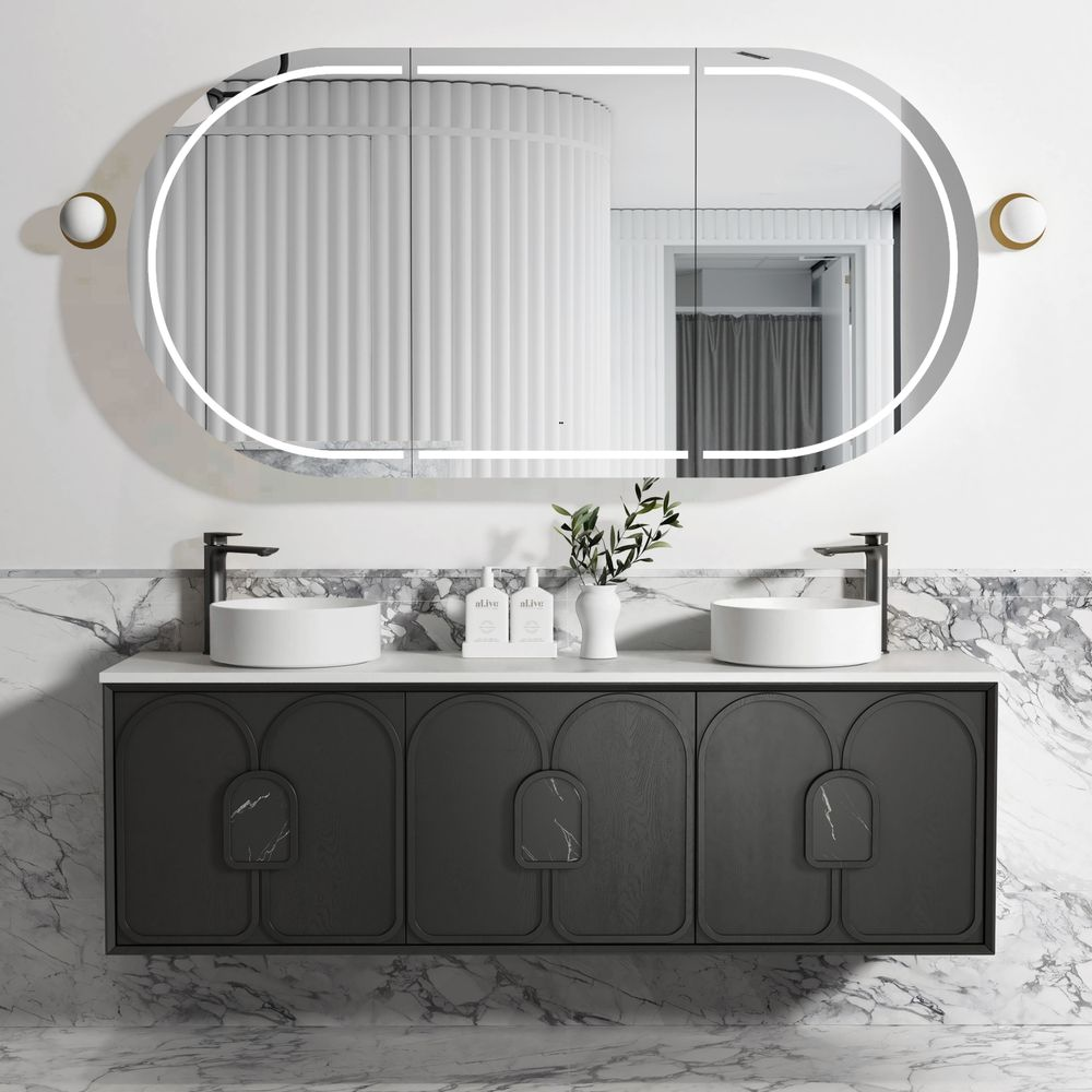 Otti Laguna 1800mm Black American Oak Wall Hung Vanity with Natural Carrara Marble Top and Double Bowl Undermount Basin