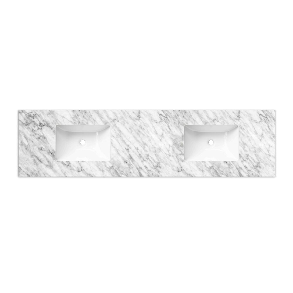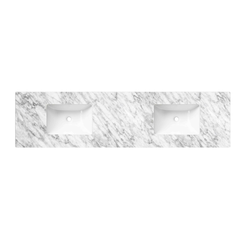Otti Laguna 1800mm Natural American Oak Wall Hung Vanity with Natural Carrara Marble Top and Double Bowl Undermount Basin