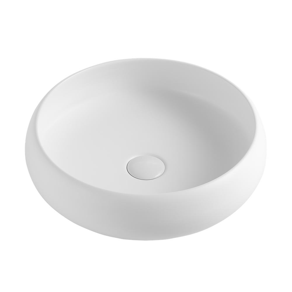 Size: 415x415x120 mmMounting: Above Counter Features: Matte White Fine Ceramic Pop up Waste Sold Separately Requires 32mm Waste, No Overflow Optional Color: Gloss White (OT4150) Read more