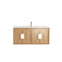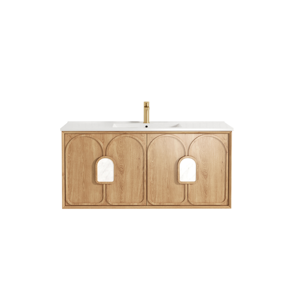 Otti Laguna Mark II 1200mm Woodland Oak Wall Hung Vanity with Natural Carrara Top and Undermount Basin