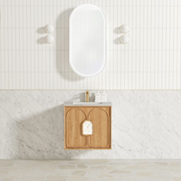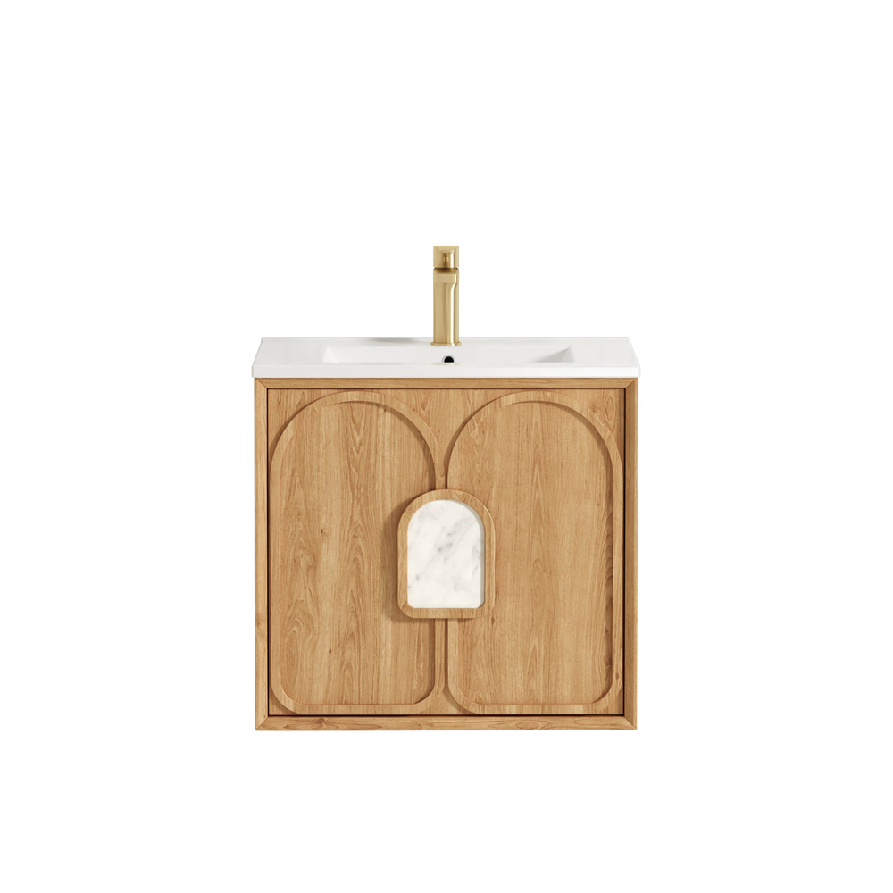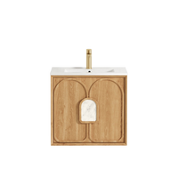Otti Laguna Mark II 600mm Woodland Oak Wall Hung Vanity with Natural Carrara Top and Undermount Basin