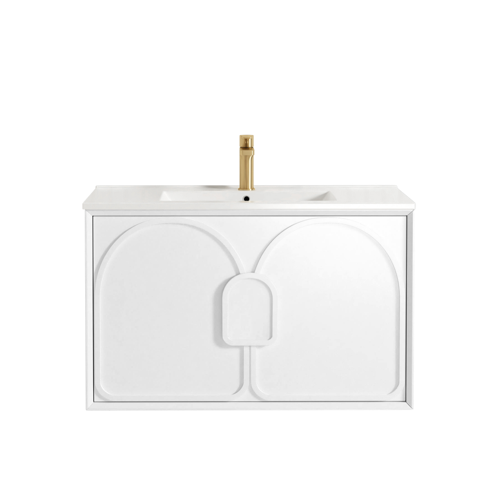 Otti Laguna Mark II 900mm Matte White Wall Hung Vanity with Natural Carrara Top and Undermount Basin