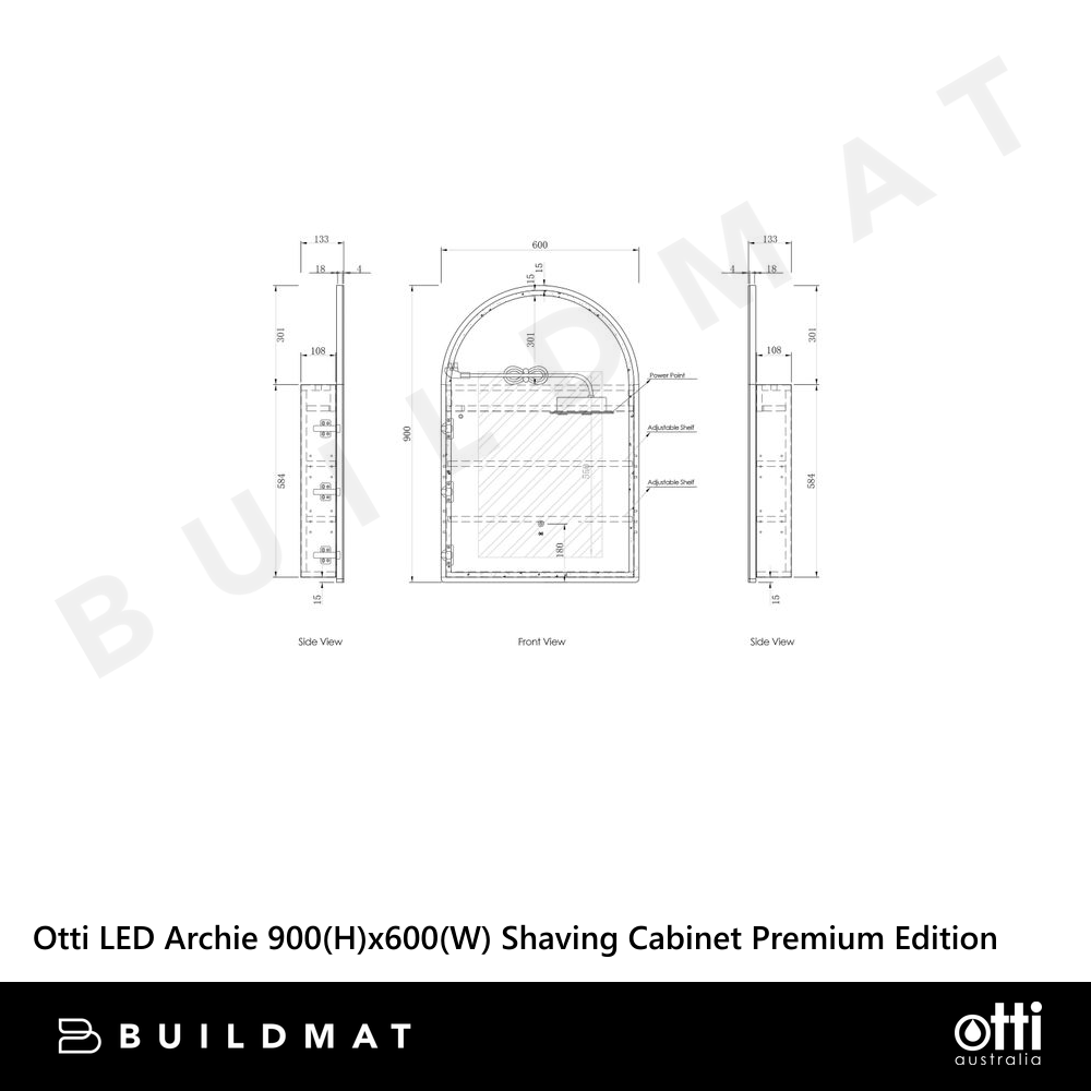 Dimensions Door: 900x600mm Cabinet: 600x584x108mm Features Configuration: Wall Mounted Features: 1 Door Soft closing -Opens from the Right Handle: Finger pull Shelf: Adjustable Shelves Power: Powerpoint and USB/USB-C Finish: Black... Read more