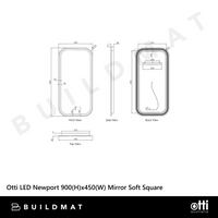 Otti LED Newport 900mm Frameless Mirror Soft Square
