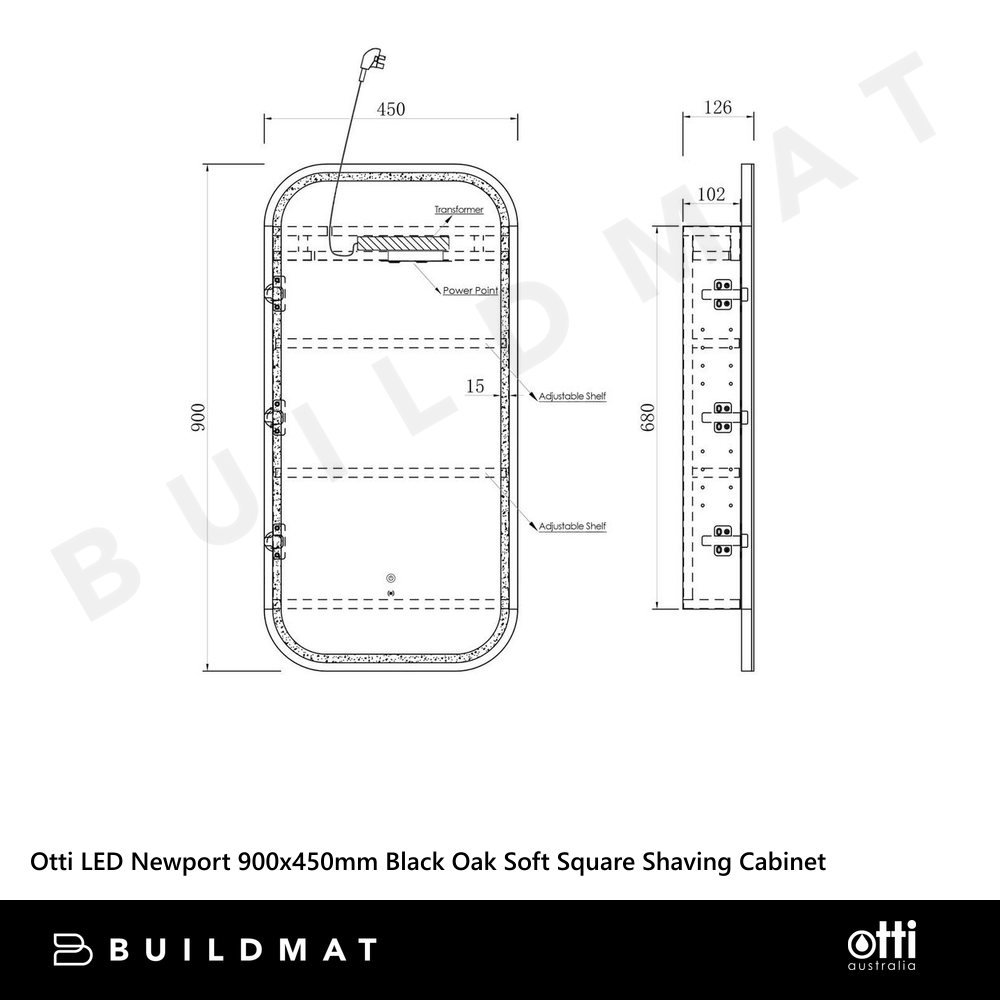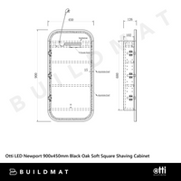 Otti Newport LED 900x450mm Shaving Cabinet Soft Square Black Oak