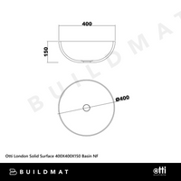Otti London Solid Surface Basin 400 x 150mm Matte White Dimensions: 400 x 400 x 150mm 'No Overflow' Read more
