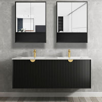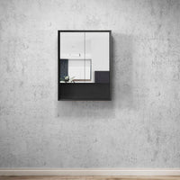 Features Cabinet: 600x800x150mm Configuration:Wall Mounted Doors:2 Door Soft closing Handle: Fingerpull Finish: Black Satin Moisture Resistant Plywood Interior Finish: Black Satin Mirror: Exterior Mirror 5mm Copper-free mirror Read more