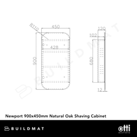 Otti Newport 900x450mm Natural Oak Shaving Cabinet