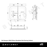 Otti Newport 900x750mm Shaving Cabinet Woodland Oak