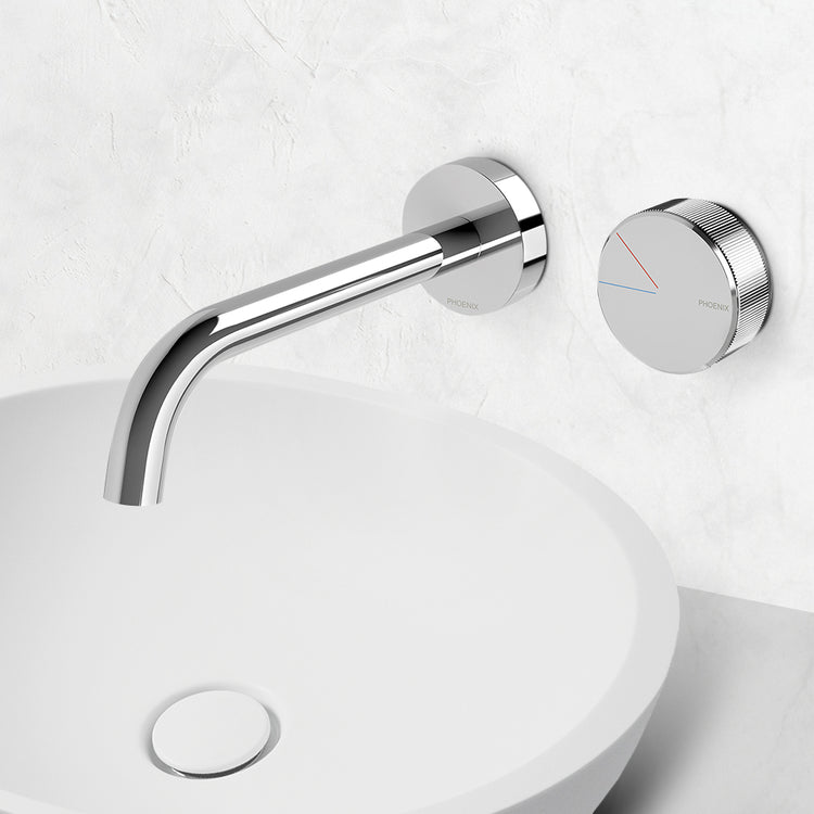 Phoenix Axia Wall Basin/Bath Curved Outlet Mixer Set 180mm Chrome