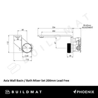 Phoenix Axia Wall Basin / Bath Mixer Set 200mm Matte Black Lead Free