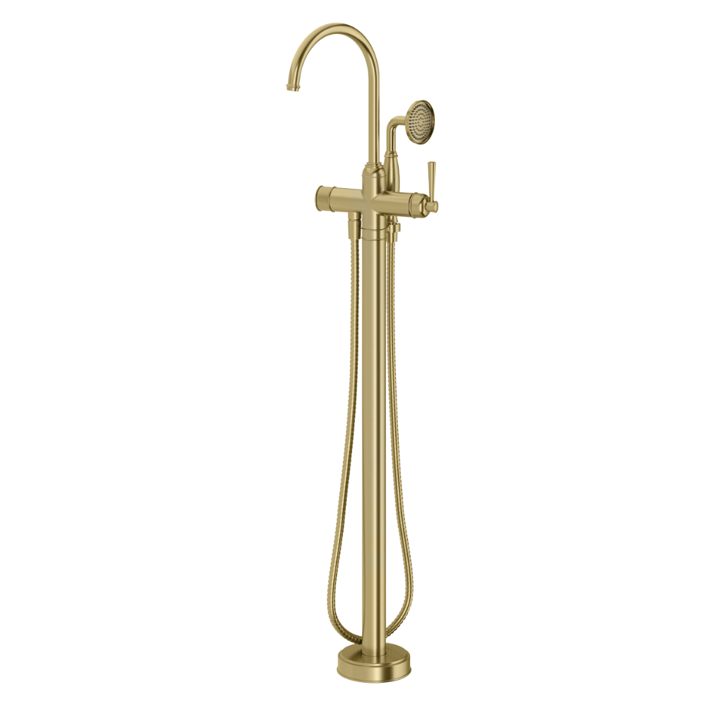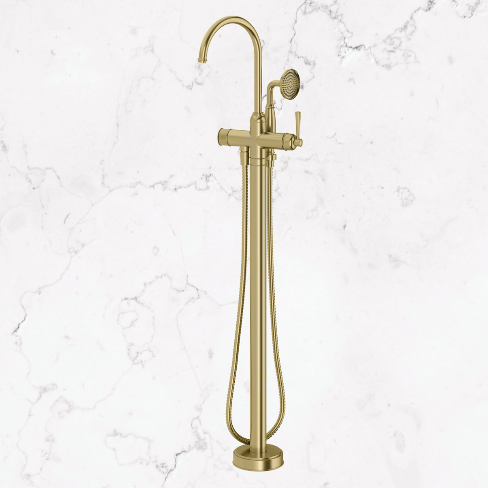 Phoenix Cromford Floor Mounted Bath Mixer with Hand Shower Brushed Gold