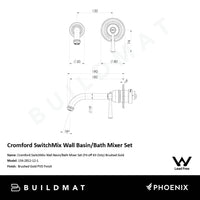 Phoenix Cromford SwitchMix Wall Basin/Bath Mixer Set (Fit-Off Kit) Lead Free Brushed Gold
