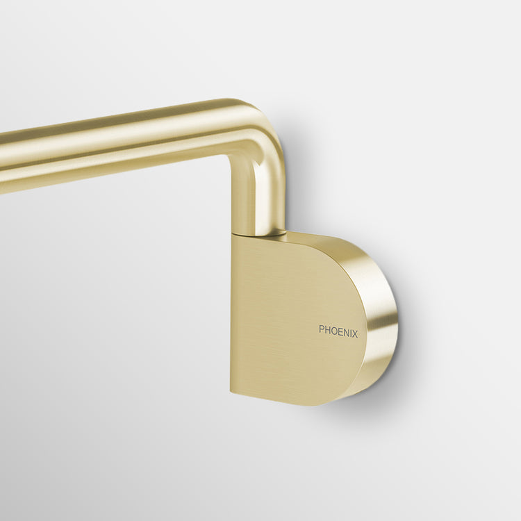 Product Features Push fit spout to eliminate installation scratches 180° swivel for practicality and ease of use Can sit flush against wall when not in use Solid brass construction Supported... Read more