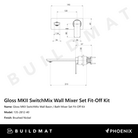 Phoenix Gloss MKII SwitchMix Wall Basin/Bath Mixer Set 200mm (Fit-Off Kit) Lead Free Brushed Nickel