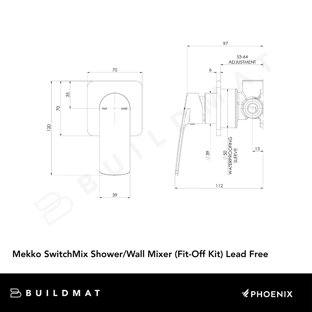 Phoenix Mekko SwitchMix Shower/Wall Mixer (Fit-Off Kit) Chrome Lead Free