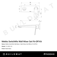 Phoenix Mekko SwitchMix Wall Basin / Bath Mixer Set 200mm Fit-Off Kit Matte Black