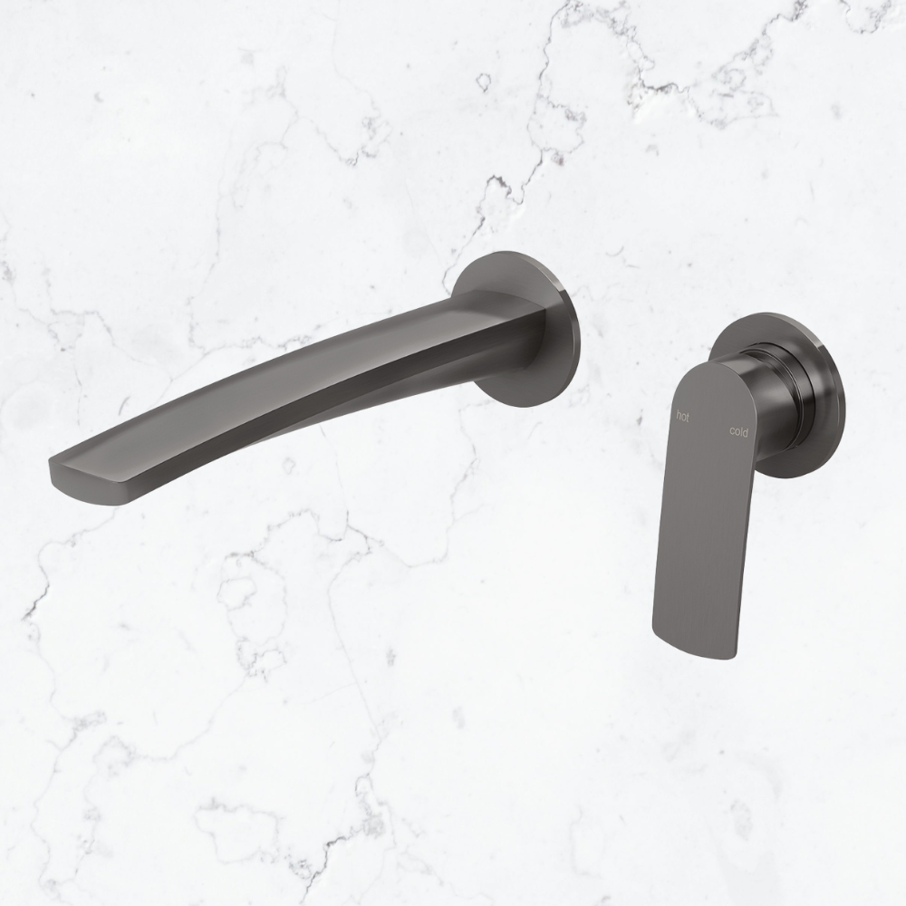 Phoenix Mekko SwitchMix Wall Basin / Bath Mixer Set 200mm Round Plates (Fit-Off Kit Only) Lead Free Brushed Carbon
