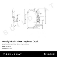 Phoenix Nostalgia Basin Mixer 160mm Shepherds Crook Antique Black