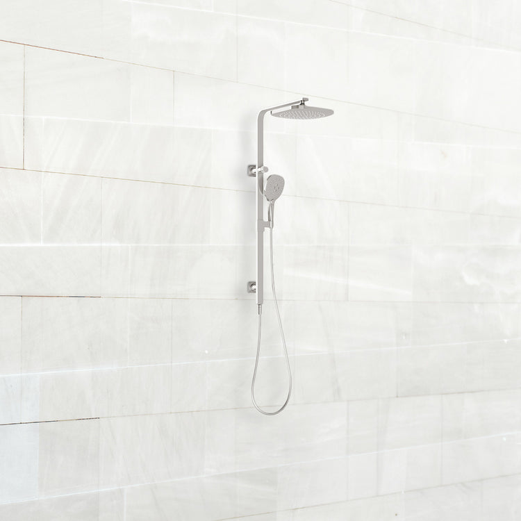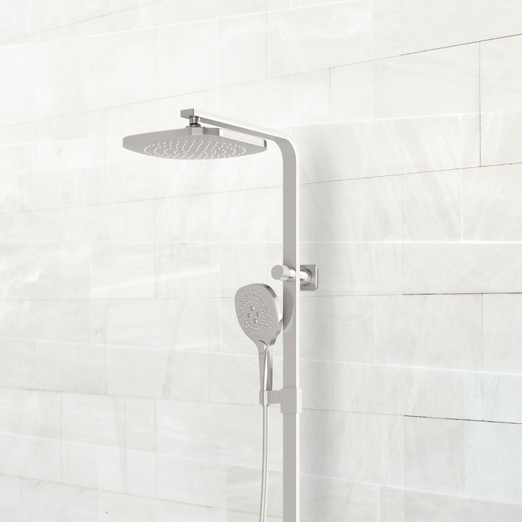 Product Features Fits onto existing 1/2€ plumbing Top inlet water diverter AS2845.1 Compliant Dual Check Valves Easy-clean, smooth hose Brass rail Adjustable handpiece height and angle 3 function handpiece 15... Read more