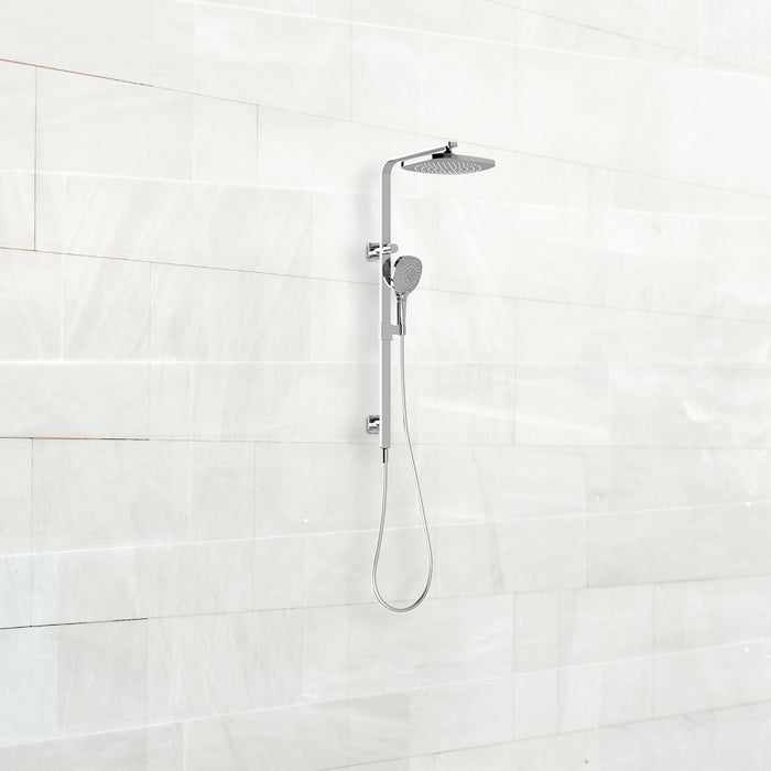 Product Features Fits onto existing 1/2€ plumbing Top inlet water diverter AS2845.1 Compliant Dual Check Valves Easy-clean, smooth hose Brass rail Adjustable handpiece height and angle 3 function handpiece 15... Read more